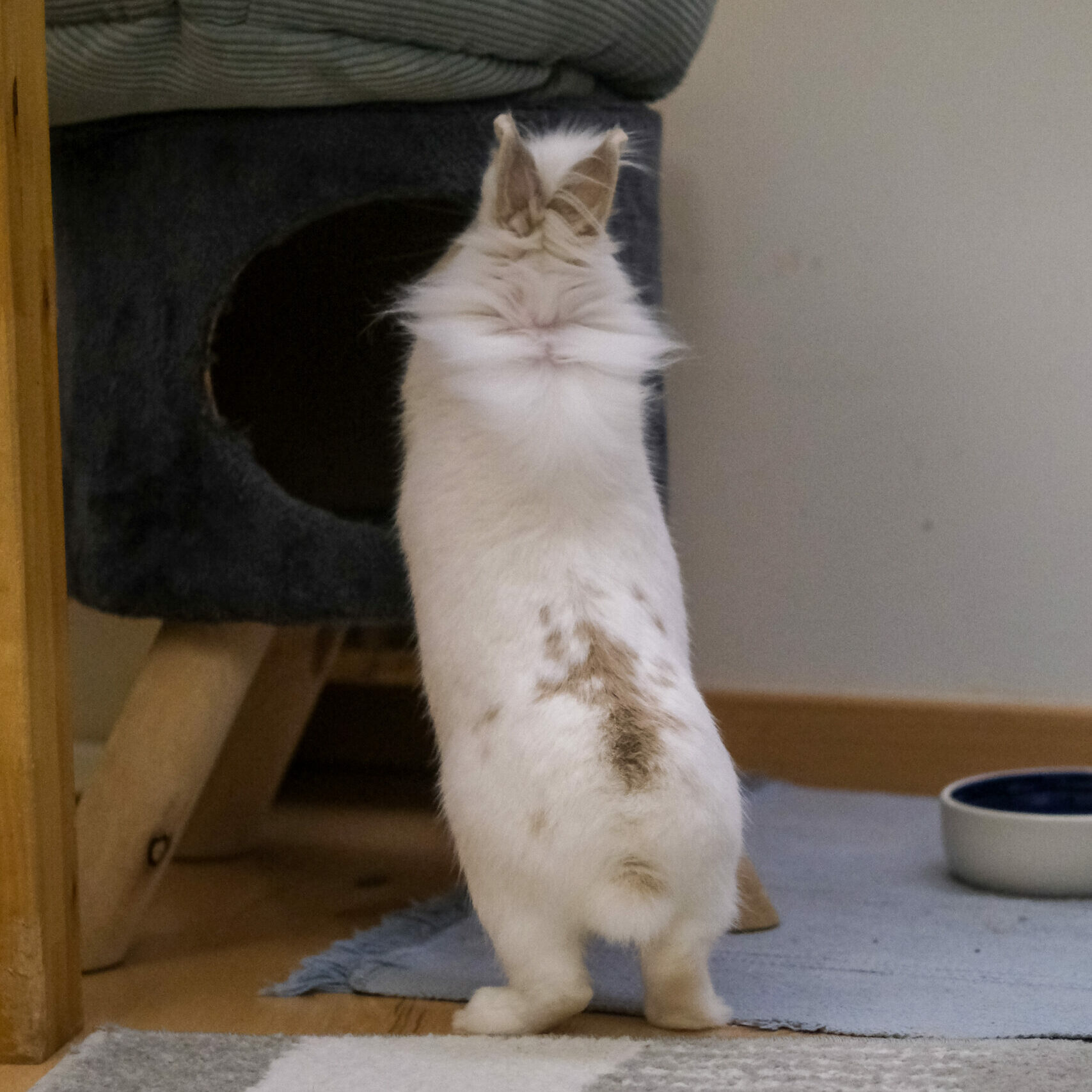 🐰 Son caractère : Sarrasin est un petit lapin très curieux, propre, gourmand et enjoué. Il apprécie énormément la présence de l’humain, n’hésite pas à venir poser ses pattes sur les genoux lorsqu’on se met au sol. Mais il a peur du contact avec les mains et grogne lorsqu’on essaie de le toucher. Il peut essayer de mordre si on ne prend pas en compte ses grognements. C’est donc un lapin avec lequel on peut avoir des interactions sympas mais pas espérer faire des câlins. Du moins pour le moment, cela pourrait venir avec le temps car il a déjà fait beaucoup de progrès depuis son arrivée.