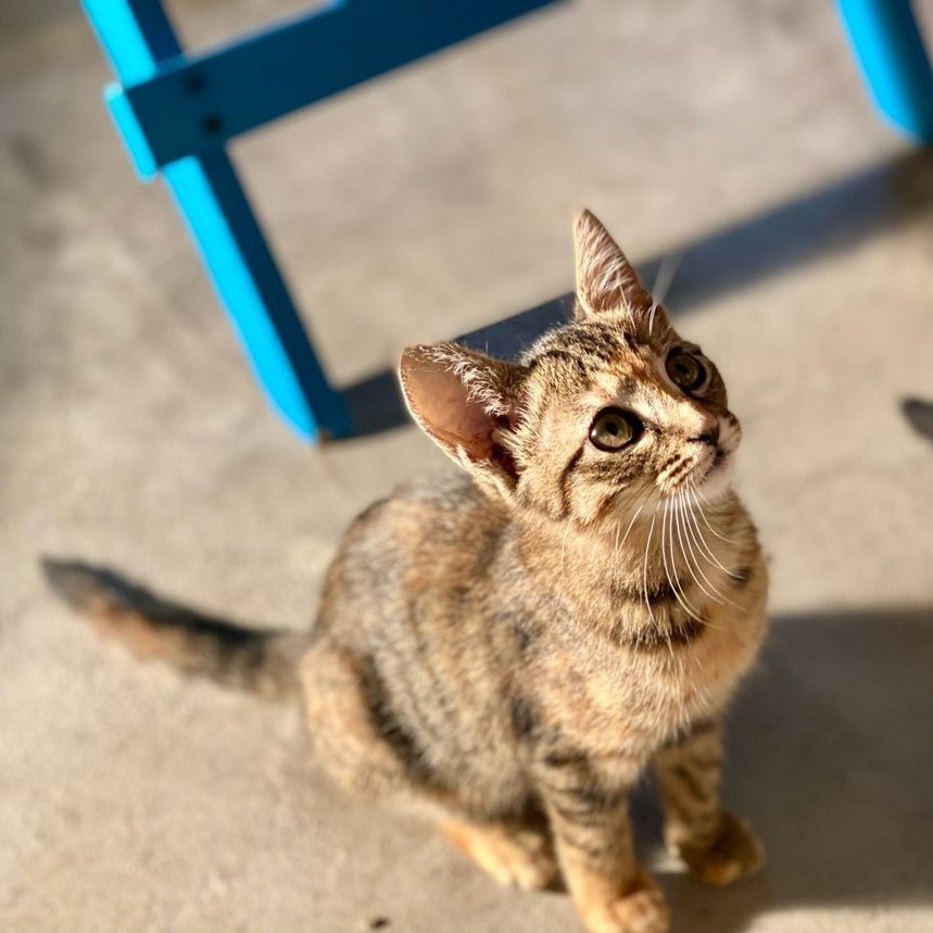 Femelle tigrée, très sociable et curieuse, elle se comporte très bien et sera également adaptée aux familles avec enfants.